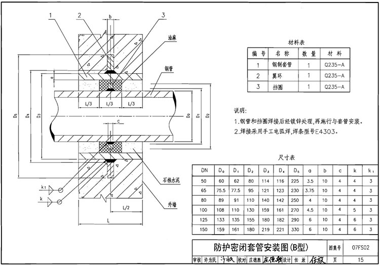 07FS02防護密閉套管圖集A B C D E F技術參數