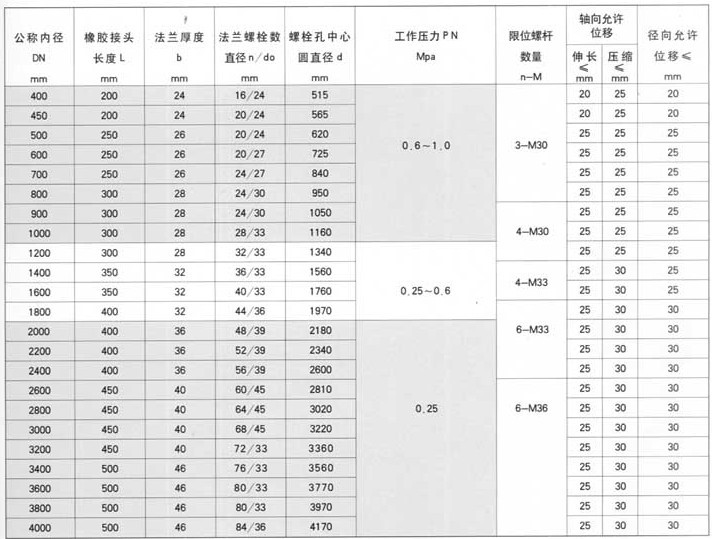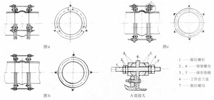 5、 當(dāng)橡膠接頭在水(油)泵出口近距離或開停頻繁條件下使用時(shí),為減少橡膠接頭長(zhǎng)度的拉伸和壓縮過大而給泵和管道帶來的影響,應(yīng)在法蘭兩端增加限位裝置。